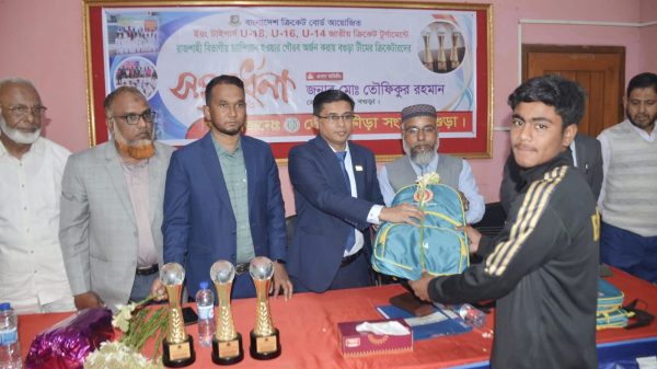 বিভাগীয় চাম্পিয়ন বগুড়ার বয়সভিত্তিক খেলোয়ারদের ক্রীড়া সংস্থার সংবর্ধনা প্রদান