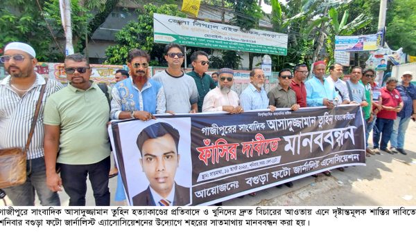 সাংবাদিক তুহিন হত্যায় জড়িতদের দৃষ্টান্তমূলক শাস্তির দাবি বগুড়া ফটো জার্নালিস্ট এ্যাসোসিয়েশনের