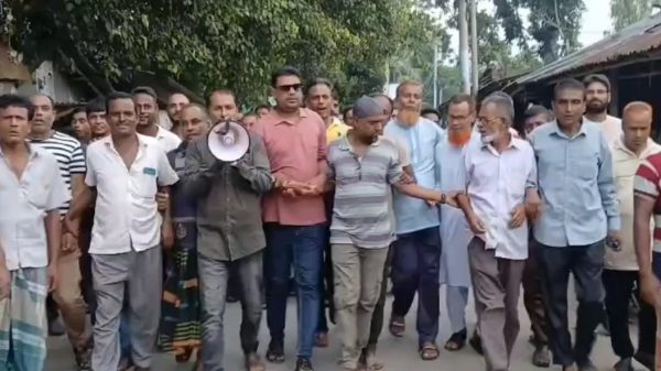 নাশকতাকারীদের গ্রেফতার দাবিতে বিক্ষোভ মিছিল-২৪ ঘন্টার আল্টিমেটাম-কঠোর আন্দোলনের হুশিয়ারী।