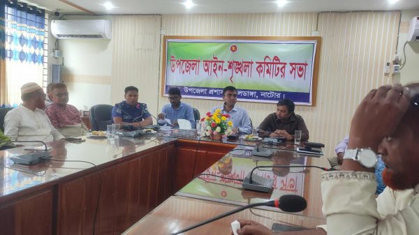 নাটোর প্রতিনিধি ঃ নাটোরের নলডাঙ্গা উপজেলা প্রশাসনের উদ্যোগে মঙ্গলবার দুপুরে উপজেলা পরিষদ হলরুমে মাসিক আইন শৃঙ্খলা কমিটির সভা অনুষ্ঠিত হয়েছে। সভায় সভাপতিত্ব করেন উপজেলা নির্বাহী কর্মকর্তা (ইউএনও) মোঃ রেদুয়ানুল