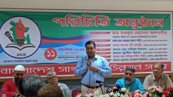 নিজস্ব প্রতিবেদক ঃ ১১ সেপ্টেম্বর ২০২৫ বৃহস্পতিবার সকালে বাংলাদেশ সাংবাদিক উন্নয়ন সংস্থা-এর পরিচিতি অনুষ্ঠান জাতীয় প্রেসক্লাব (২য় তলা), মানিক মিয়া মিলনায়তনে সংস্থার চেয়ারম্যান মোঃ মনিনুর রশিদ শাইন এর সভাপতিত্বে ও