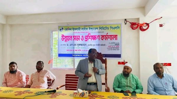 নাটোর প্রতিনিধিঃ নাটোরে জেনিথ ইসলামী লাইফ ইন্স্যুরেন্স লিমিটেড পিএলসির উদ্যোগে উন্নয়ন সভা ও প্রশিক্ষণ কর্মশালা অনুষ্ঠিত হয়েছে। আজ মঙ্গলবার (১৬ সেপ্টেম্বর) সকালে উপজেলার তমালতলাস্থ অফিসে এই অনুষ্ঠান অনুষ্ঠিত হয়। অনুষ্ঠানের