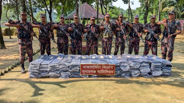 মোঃ আরিফুল ইসলাম মুরাদ সিনিয়র সাংবাদিক স্টাফ রিপোটারঃ ২৮ বর্ডারগার্ড(বিজিবি)”র সুনামগঞ্জের মধ্যনগর উপজেলার ১নং বংশীকুন্ডা ইউনিয়নের বাংগালভিটা বিওপির সদস্যরা ভারতীয় সীমান্ত পিলারের ১১৯০/১৩এস হতে ৩ শত গজ বাংলাদশের অভ্যন্তরে