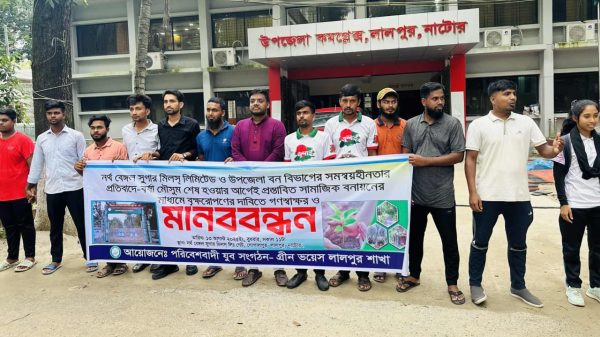 লালপুর (নাটোর) প্রতিনিধি: নাটোরের লালপুরে ৬ কিলোমিটার খালের পাড়ে সামাজিক বনায়ন প্রকল্প বাস্তবায়নে নর্থ বেঙ্গল সুগার মিলের (চিনিকল) ও বন বিভাগের সমন্বয়হীনতার প্রতিবাদে ও বর্ষা শেষ হওয়ার আগে প্রস্তাবিত